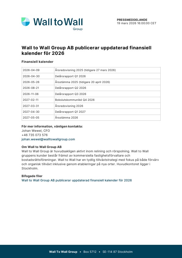 | 2026-05-26 | Årsstämma 2025 (tidigare 20 april 2026) |